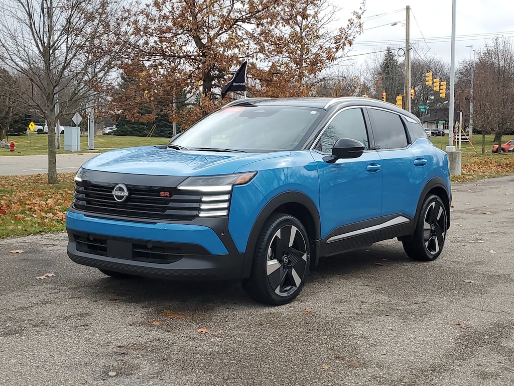2025 Nissan Kicks SR Arctic Ice Blue Metallic/Super Black Nissan Certified Certified, 17" Alloy Wheels, 19" Alloy Wheels, 2-Tone Premium Paint, 4-Wheel Disc Brakes, 6 Speakers, ABS brakes, Air Conditioning, Alloy wheels, AM/FM radio: Sirius, Auto High-beam Headlights, Automatic temperature control, Brake assist, Bumpers: body-color, Carpeted Floor Mats, Delay-off headlights, Driver door bin, Driver vanity mirror, Dual front impact airbags, Dual front side impact airbags, Electronic Stability Control, Four wheel independent suspension, Front anti-roll bar, Front Bucket Seats, Front Center Armrest, Front reading lights, Fully automatic headlights, Heated door mirrors, Illuminated entry, Knee airbag, Leather Shift Knob, Leather steering wheel, Low tire pressure warning, Occupant sensing airbag, Outside temperature display, Overhead airbag, Overhead console, Panic alarm, Passenger door bin, Passenger vanity mirror, Power door mirrors, Power steering, Power windows, Radio data system, Radio: AM/FM Audio System, Rear anti-roll bar, Rear reading lights, Rear seat center armrest, Rear side impact airbag, Rear window defroster, Rear window wiper, Remote keyless entry, Security system, Speed control, Speed-sensing steering, Splash Guards, Split folding rear seat, Spoiler, Sport Cloth/Leatherette Seat Trim, Sport steering wheel, Steering wheel mounted audio controls, Tachometer, Telescoping steering wheel, Tilt steering wheel, Traction control, Trip computer, Turn signal indicator mirrors, Variably intermittent wipers, Wireless Apple CarPlay/Wireless Android Auto. Certified. AWD 2.0L DOHC 27/34 City/Highway MPG CVT with Xtronic