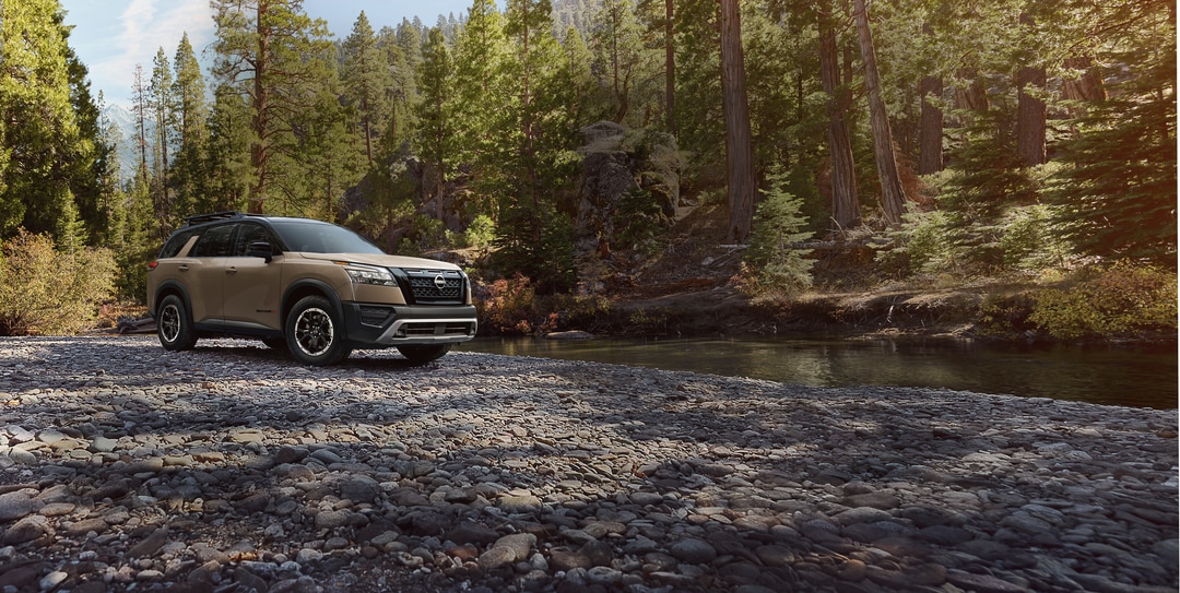 S, SV, SL, Rock Creek, and Platinum are the Nissan Pathfinder trim levels to choose from. The base S kickstarts the lineup with Tri-Zone Automatic Temperature Control. Rugged Pathfinder Rock Creek models are 4x4 SUVs with an off-road-tuned suspension. Whether you're looking for luxurious appointments like quilted semi-aniline leather seats and a panoramic moonroof or rugged touches like all-terrain tires and a tubular roof rack, there's a new Nissan Pathfinder model that will exceed your crew's expectations.
