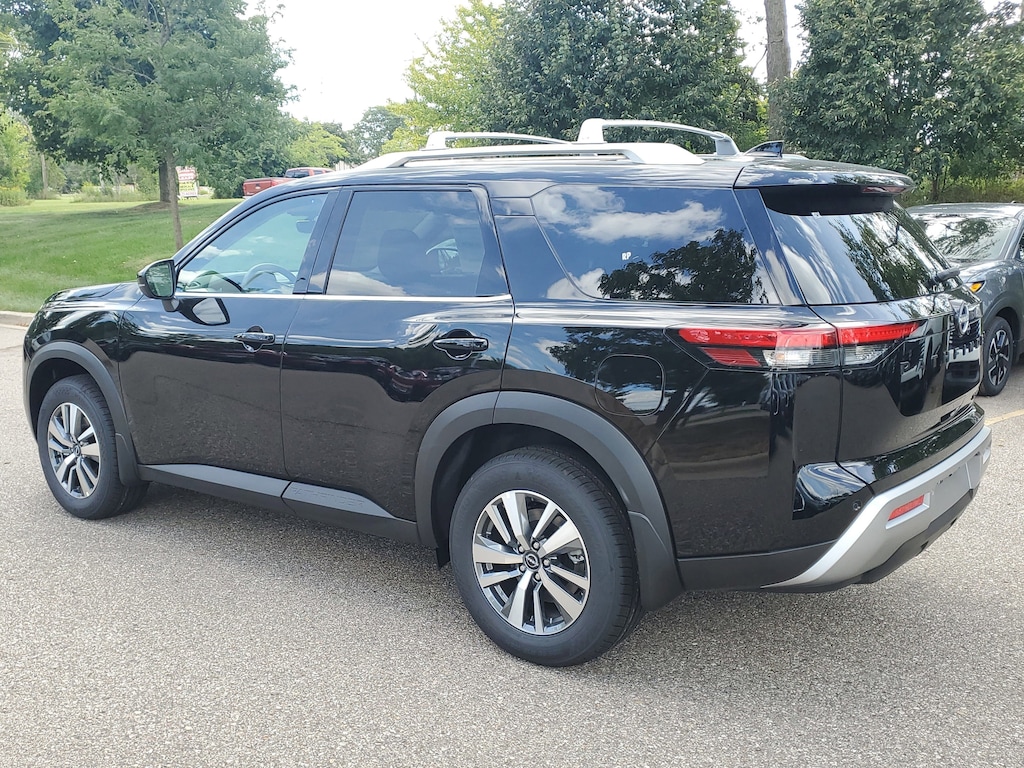 Super Black 2025 Nissan Pathfinder SL 4WD 9-Speed Automatic 3.5L V6 DOHC 4WD, 3rd row seats: bench, 4-Wheel Disc Brakes, 6 Speakers, ABS brakes, Air Conditioning, Alloy wheels, AM/FM radio: SiriusXM, Auto High-beam Headlights, Auto-dimming Rear-View mirror, Automatic temperature control, Bench Seat Carpeted Floor Mats (set of 4), Black Appearance Package, Black Grille, Black Liftgate Emblems, Black Splash Guards (set of 4), Brake assist, Bumpers: body-color, Cross Bars, Delay-off headlights, Driver door bin, Driver vanity mirror, Dual front impact airbags, Dual front side impact airbags, Electronic Stability Control, Emergency communication system, Exterior Parking Camera Rear, Four wheel independent suspension, Front anti-roll bar, Front Bucket Seats, Front Center Armrest, Front dual zone A/C, Front reading lights, Fully automatic headlights, Garage door transmitter: HomeLink, Heated door mirrors, Heated Front Bucket Seats, Heated front seats, Heated steering wheel, Illuminated entry, Knee airbag, Leather steering wheel, Leather-Appointed Seating Surfaces, Low tire pressure warning, Navigation system: NissanConnect with Navigation and Services, NissanConnect featuring Apple CarPlay and Android Auto, NissanConnect with Navigation and Services, Occupant sensing airbag, Outside temperature display, Overhead airbag, Overhead console, Panic alarm, Passenger door bin, Passenger vanity mirror, Power door mirrors, Power driver seat, Power Liftgate, Power passenger seat, Power steering, Power windows, Radio data system, Radio: AM/FM Audio System, Rear air conditioning, Rear anti-roll bar, Rear reading lights, Rear seat center armrest, Rear side impact airbag, Rear window defroster, Rear window wiper, Reclining 3rd row seat, Remote keyless entry, Security system, Speed control, Speed-sensing steering, Split folding rear seat, Spoiler, Steering wheel mounted audio controls, Tachometer, Telescoping steering wheel, Tilt steering wheel, Traction control, Trip computer, Turn signal indicator mirrors, Variably intermittent wipers, Wheels: 18" x 8J Machined Alloy, 4WD.
