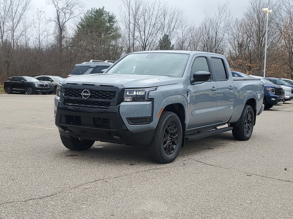 Boulder Gray Pearl 2026 Nissan Frontier SV 4WD 9-Speed Automatic with Overdrive 3.8L DI DOHC 24V V6 4WD, 120V Power Outlet in Bed, 120V Power Outlet in Rear Center Console, 17" Alloy Wheels, 3.692 Axle Ratio, 4-Wheel Disc Brakes, 6 Speakers, ABS brakes, Air Conditioning, Alloy wheels, AM/FM radio: SiriusXM, Anti-whiplash front head restraints, Auto High-beam Headlights, Bed Under-Rail Lighting, Blade Running Board, Blind Spot Warning, Brake assist, Bumpers: body-color, Carpeted Floor Mats, Dark Armor Package, Dark FRONTIER Tailgate Lettering, Dark Grill Surround/Mesh/Inner Fascia, Dark Mirror Caps, Delay-off headlights, Driver door bin, Driver vanity mirror, Dual front impact airbags, Dual front side impact airbags, Electronic Stability Control, Electronic Tailgate Lock, Emergency communication system, Front anti-roll bar, Front Bucket Seats, Front Center Armrest, Front reading lights, Front wheel independent suspension, Fully automatic headlights, Heated door mirrors, Heated Front Seats, Heated Leather Steering Wheel, Heated Outside Mirrors, HVAC - Dual-Zone Front Auto A/C, I-Key w/Request Switches on O/S Handles, Illuminated entry, Knee airbag, Locking Glove Box, Low tire pressure warning, Occupant sensing airbag, Overhead airbag, Overhead console, Panic alarm, Passenger door bin, Passenger vanity mirror, Power door mirrors, Power driver seat, Power steering, Power windows, Premium Cloth Seat Trim, Premium Paint, Radio data system, Radio: SXM/AM/FM/AUX/USB Audio System, Rear anti-roll bar, Rear seat center armrest, Rear side impact airbag, Rear step bumper, Remote Engine Starter, Remote keyless entry, Security system, Soft Tonneau Cover (6.0' Bed), Speed control, Speed-sensing steering, Splash Guards, Split folding rear seat, Spray-In Bedliner, Steering wheel mounted audio controls, SV Convenience Package, Tachometer, Telescoping steering wheel, Tilt steering wheel, Tow/Haul Mode Switch, Traction control, Trailer Hitch w/Wiring Harness, Trip computer, Utili-Track System, Variably intermittent wipers, Voltmeter, Wheels: 17" Dark, Wireless Apple CarPlay/Wireless Android Auto, 4WD.