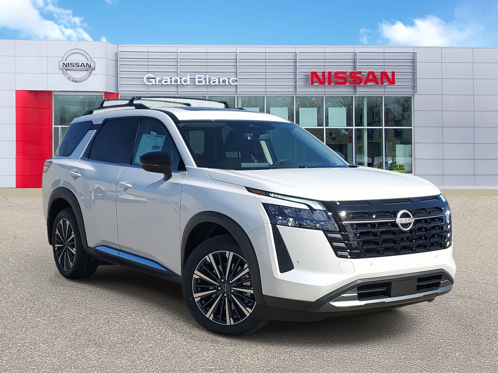 Everest White Pearl Tricoat 2026 Nissan Pathfinder Platinum 4WD 9-Speed Automatic 3.5L V6 DOHC 4WD, 13 Speakers, 2nd-Row Captain Chairs, 2nd-Row Removable Centre Console, 3rd row seats: bench, 4-Piece Black Splash Guards, 4-Wheel Disc Brakes, ABS brakes, Air Conditioning, Alloy wheels, AM/FM radio: SiriusXM w/360L, Auto High-beam Headlights, Auto tilt-away steering wheel, Auto-dimming Rear-View mirror, Automatic temperature control, Bodyside moldings, Bose Premium Audio System, Brake assist, Bumpers: body-color, Captain's Chairs Carpeted Floor Mats, Cargo Area Protector, Cargo Net, Cargo Package, Climate Controlled Front Bucket Seats, Cross Bars, Delay-off headlights, Driver door bin, Driver vanity mirror, Dual front impact airbags, Dual front side impact airbags, Electronic Stability Control, Emergency communication system: NissanConnect Services, First Aid, Four wheel independent suspension, Front anti-roll bar, Front Bucket Seats, Front Center Armrest, Front dual zone A/C, Front reading lights, Fully automatic headlights, Garage door transmitter: HomeLink, Heads-Up Display, Heated door mirrors, Heated front seats, Heated rear seats, Heated steering wheel, Illuminated entry, Knee airbag, Low tire pressure warning, Memory seat, NissanConnect featuring Apple CarPlay and Android Auto, Occupant sensing airbag, Outside temperature display, Overhead airbag, Overhead console, Panic alarm, Passenger door bin, Passenger vanity mirror, Platinum Captain Chairs Package, Power door mirrors, Power driver seat, Power Liftgate, Power moonroof, Power passenger seat, Power steering, Power windows, Premium Paint, Radio data system, Radio: AM/FM Audio System with NissanConnect, Rain sensing wipers, Rear air conditioning, Rear anti-roll bar, Rear reading lights, Rear seat center armrest, Rear side impact airbag, Rear window defroster, Rear window wiper, Reclining 3rd row seat, Remote keyless entry, Security system, Semi-Aniline Leather-Appointed Seating Surfaces, Speed control, Speed-sensing steering, Speed-Sensitive Wipers, Split folding rear seat, Spoiler, Steering wheel memory, Steering wheel mounted audio controls, Tachometer, Telescoping steering wheel, Tilt steering wheel, Traction control, Trip computer, Turn signal indicator mirrors, Variably intermittent wipers, Ventilated front seats, Wheels: 20" Machined Alloy, 4WD.