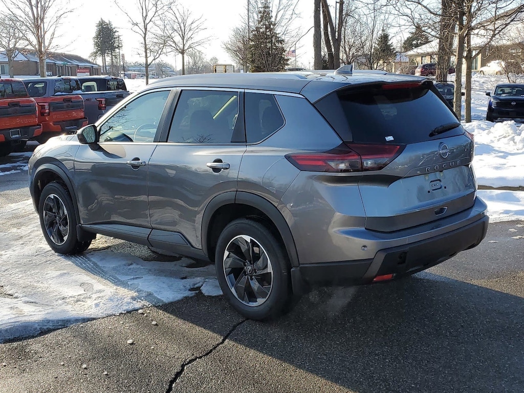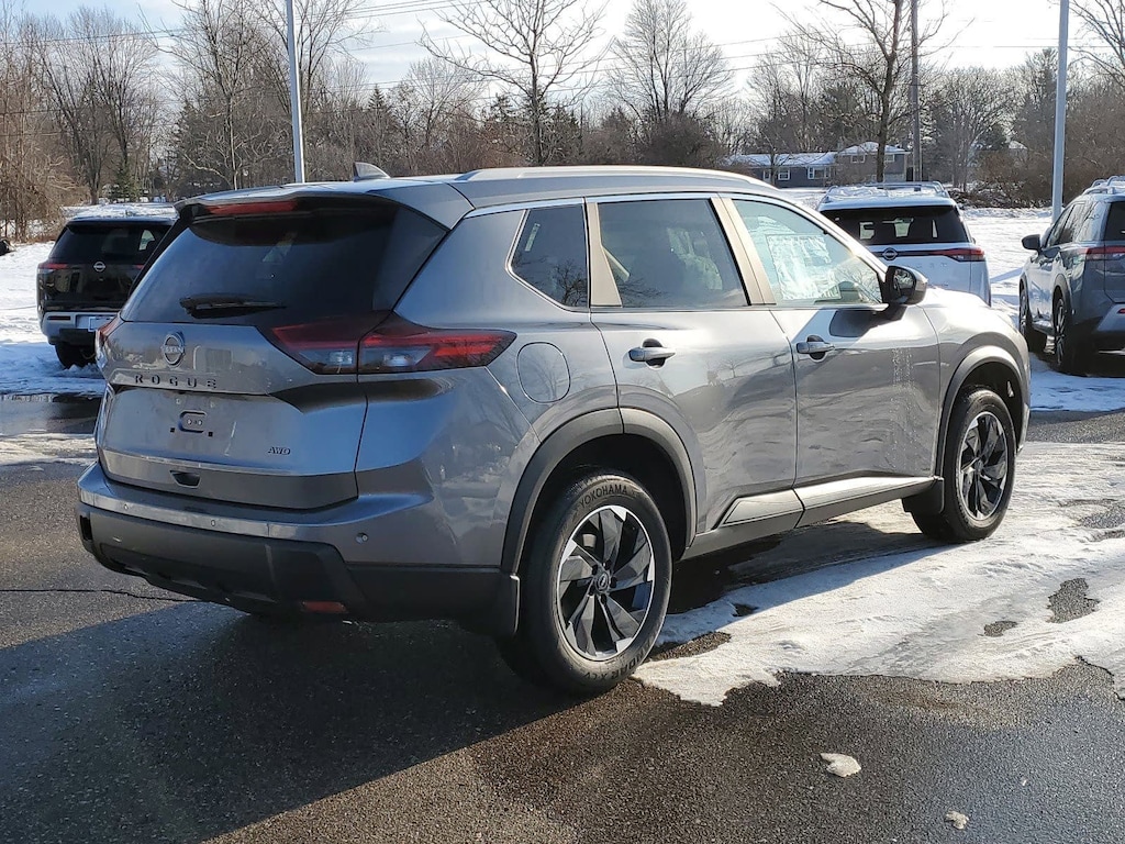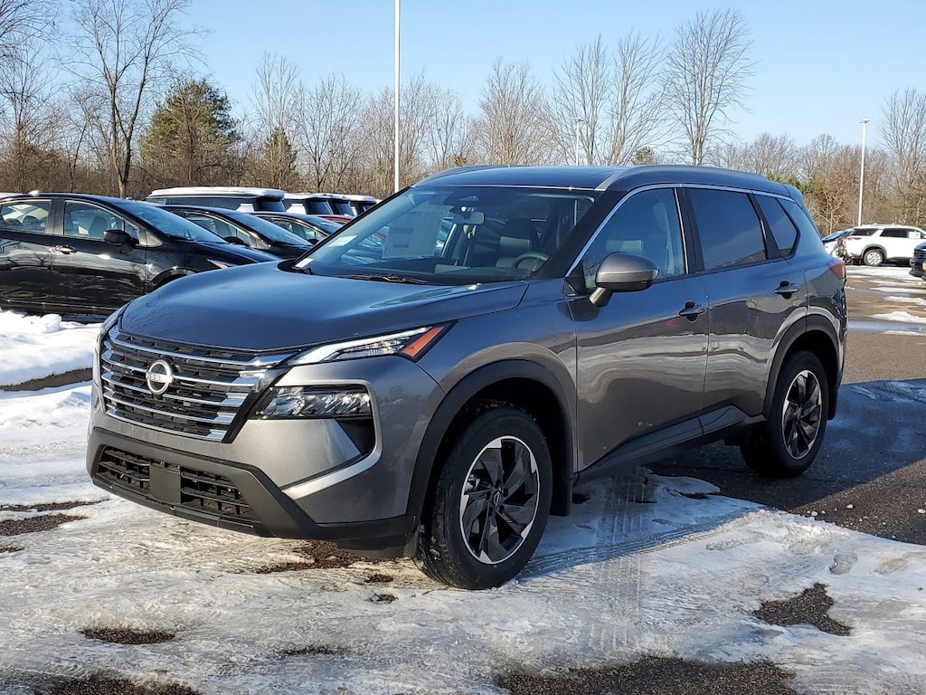 Gun Metallic 2026 Nissan Rogue SV AWD CVT with Xtronic 1.5L DOHC AWD, 4-Wheel Disc Brakes, 6 Speakers, ABS brakes, Air Conditioning, Alloy wheels, AM/FM radio: Sirius, Apple CarPlay/Android Auto, Auto High-beam Headlights, Automatic temperature control, Black Splash Guards (set of 4), Brake assist, Bumpers: body-color, Cloth Seat Trim with Patterned Inserts, Cold Weather Package, Delay-off headlights, Driver door bin, Driver vanity mirror, Dual front impact airbags, Dual front side impact airbags, Electronic Stability Control, Emergency communication system: NissanConnect Services, Floor Mats with 1-Piece Cargo Area Protector, Four wheel independent suspension, Front anti-roll bar, Front Bucket Seats, Front Center Armrest, Front dual zone A/C, Front reading lights, Fully automatic headlights, Heated door mirrors, Heated Front Seats, Illuminated entry, Knee airbag, Leatherette Door Trim Inserts with Stitch, Low tire pressure warning, Occupant sensing airbag, Outside temperature display, Overhead airbag, Overhead console, Panic alarm, Panoramic Moonroof, Passenger door bin, Passenger vanity mirror, Power door mirrors, Power driver seat, Power Liftgate, Power steering, Power windows, Prima-Tex Leatherette Seat Trim, Radio data system, Radio: AM/FM NissanConnect, Rear anti-roll bar, Rear Door Sunshades, Rear Personal Lights, Rear seat center armrest, Rear side impact airbag, Rear window defroster, Rear window wiper, Remote keyless entry, Silver Painted Roof Rails, Speed control, Speed-sensing steering, Speed-Sensitive Wipers, Split folding rear seat, Spoiler, Steering wheel mounted audio controls, SV Premium Package, Tachometer, Telescoping steering wheel, Tilt steering wheel, Traction control, Trip computer, Variably intermittent wipers, Wheels: 18" Dark Painted Machine Finished Alloy, AWD.