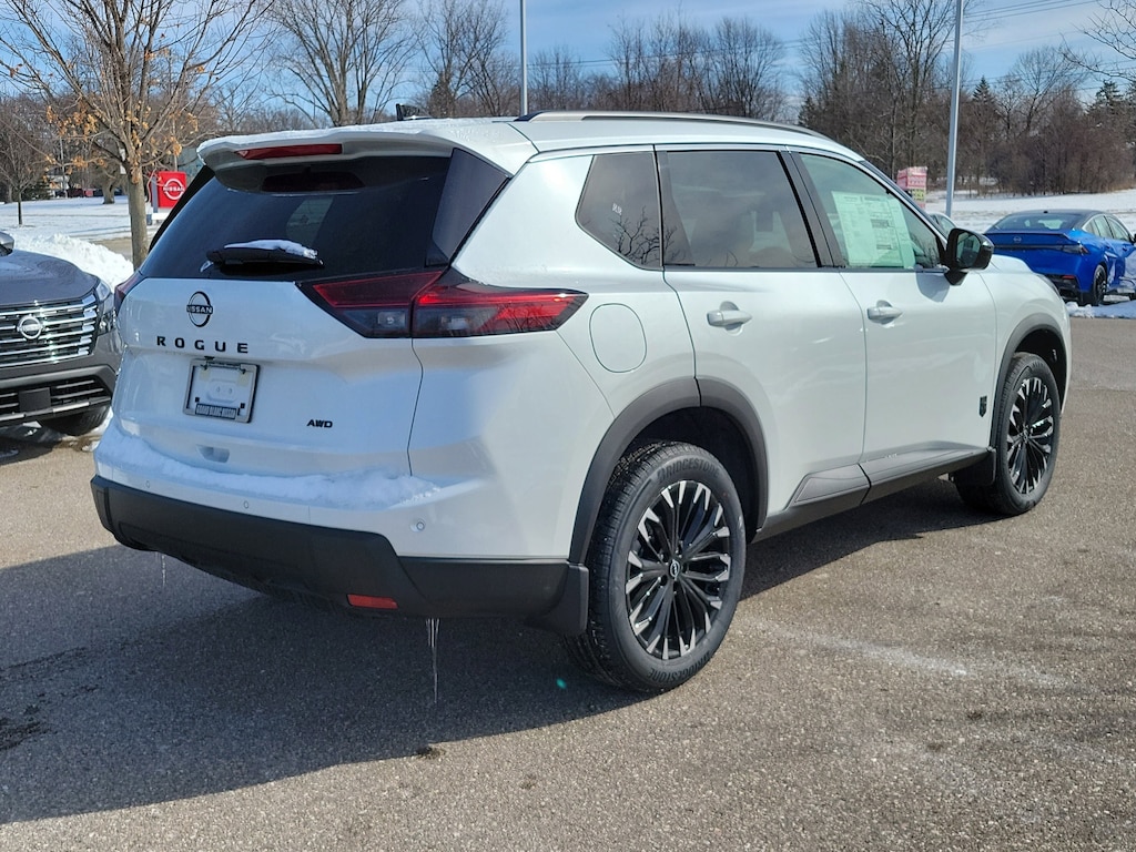 Everest White Pearl Tricoat 2026 Nissan Rogue Dark Armor AWD CVT with Xtronic 1.5L DOHC AWD, 4-Wheel Disc Brakes, 6 Speakers, ABS brakes, Air Conditioning, Alloy wheels, AM/FM radio, Apple CarPlay/Android Auto, Auto High-beam Headlights, Automatic temperature control, Black Splash Guards (set of 4), Brake assist, Bumpers: body-color, Delay-off headlights, Driver door bin, Driver vanity mirror, Dual front impact airbags, Dual front side impact airbags, Electronic Stability Control, Emergency communication system: NissanConnect Services, Exterior Parking Camera Rear, Floor Mats with 1-Piece Cargo Area Protector, Four wheel independent suspension, Frameless Rearview Mirror with Universal Remote, Front anti-roll bar, Front Bucket Seats, Front Center Armrest, Front dual zone A/C, Front reading lights, Fully automatic headlights, Heated door mirrors, Heated Front Bucket Seats, Heated front seats, Heated steering wheel, Illuminated entry, Illuminated Kick Plates, Knee airbag, Low tire pressure warning, Occupant sensing airbag, Outside temperature display, Overhead airbag, Overhead console, Panic alarm, Passenger door bin, Passenger vanity mirror, Power door mirrors, Power driver seat, Power Liftgate, Power moonroof, Power steering, Power windows, Premium Paint, Prima-Tex Leatherette Seat Trim, Radio data system, Radio: AM/FM NissanConnect, Rear anti-roll bar, Rear Parking Sensors, Rear reading lights, Rear seat center armrest, Rear side impact airbag, Rear window defroster, Rear window wiper, Remote keyless entry, Retractable Cargo Cover, Speed control, Speed-sensing steering, Speed-Sensitive Wipers, Split folding rear seat, Spoiler, Steering wheel mounted audio controls, Tachometer, Telescoping steering wheel, Tilt steering wheel, Traction control, Trip computer, Variably intermittent wipers, Wheels: 19" Black Painted and Machine Finished Alloy, AWD.