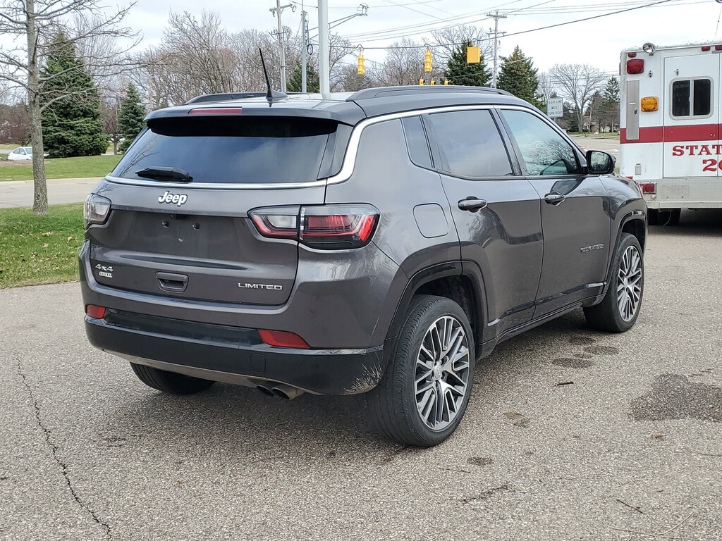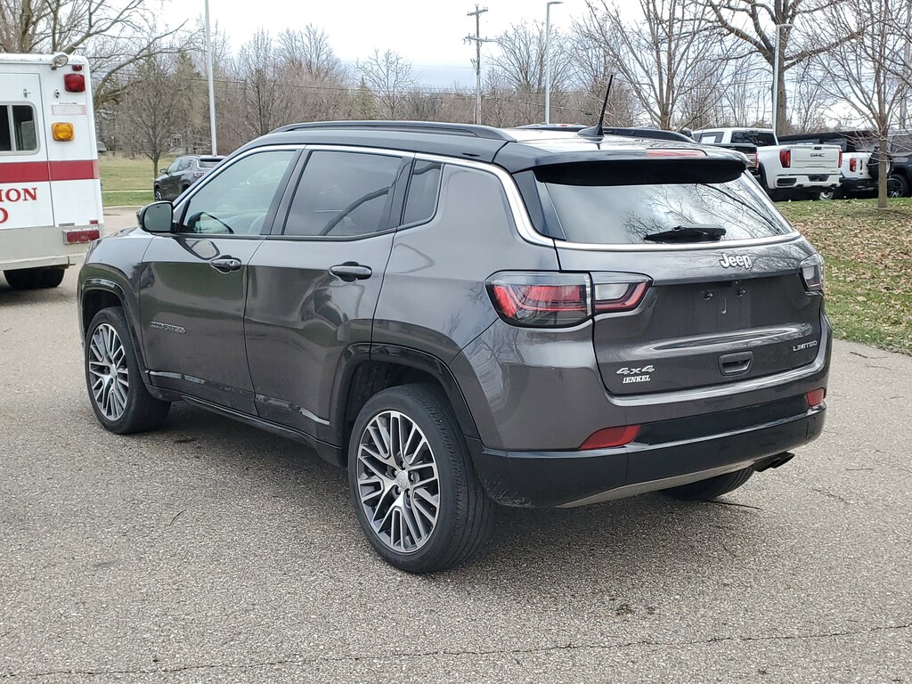 2022 Jeep Compass Limited Granite Crystal Metallic Clearcoat 4WD, 10.1" Touchscreen Display, 115V Auxiliary Power Outlet, 2nd Row Heated Seats, 2nd Row USB Type A/C Charge Only, 3.73 Axle Ratio, 4-Wheel Disc Brakes, 4G LTE Wi-Fi Hot Spot, 6 Speakers, ABS brakes, Air Conditioning, Alexa Built-In, Alloy wheels, AM/FM radio: SiriusXM, Anti-whiplash front head restraints, Auto High-beam Headlights, Auto-dimming Rear-View mirror, Automatic temperature control, Brake assist, Bumpers: body-color, Cluster 10.25" TFT Color Display, Compass, Connected Travel & Traffic Services, Delay-off headlights, Disassociated Touchscreen Display, Driver door bin, Driver Seat Memory, Driver vanity mirror, Dual front impact airbags, Dual front side impact airbags, Electronic Stability Control, Elite Group, Emergency communication system: SiriusXM Guardian, Foot Activated Open 'N Go Liftgate, For Details, Visit DriveUconnect.com, For More Info, Call 800-643-2112, Four wheel independent suspension, Front anti-roll bar, Front Bucket Seats, Front Center Armrest w/Storage, Front dual zone A/C, Front fog lights, Front reading lights, Fully automatic headlights, Global Telematics Box Module (TBM), Gloss Black Door Cladding, Gloss Black Exterior Mirrors, Gloss Black Exterior Sill, Gloss Black Fascias, Gloss Black Wheel Flares, GPS Navigation, HD Radio, Heated door mirrors, Heated front seats, Heated steering wheel, Illuminated entry, Integrated Voice Command w/Bluetooth, Knee airbag, Leather Shift Knob, Leather Trimmed Bucket Seats, LED Low/Highbeam Projector Headlamps, Low tire pressure warning, No Satellite Coverage HI/AK/PR/VI/GU, Occupant sensing airbag, Outside temperature display, Overhead airbag, Overhead console, Panic alarm, ParkView Rear Back-Up Camera, Passenger door bin, Passenger vanity mirror, Power 2-Way Passenger Lumbar Adjust, Power 8-Way Adjust Front Passenger Seat, Power door mirrors, Power driver seat, Power Front/Fixed Rear Full Sunroof, Power Liftgate, Power steering, Power windows, Premium Alpine Speaker System, Premium Leather Trimmed Bucket Seats, Premium LED Fog Lamps, Premium Taillamps, Quick Order Package 2GG, Radio: Uconnect 5 Nav w/10.1" Display, Radio: Uconnect 5 w/10.1" Display, Rain sensing wipers, Rear anti-roll bar, Rear seat center armrest, Rear window defroster, Rear window wiper, Remote keyless entry, Reversible Carpet/Vinyl Cargo Mat, Roof rack: rails only, Security system, SiriusXM Guardian - Included Trial (B), SiriusXM Radio Service, SiriusXM Satellite Radio, SiriusXM w/360L, Speed control, Split folding rear seat, Spoiler, Steering wheel mounted audio controls, Sun and Sound Group, Tachometer, Telescoping steering wheel, Tilt steering wheel, Traction control, Trip computer, Turn signal indicator mirrors, Variably intermittent wipers, Ventilated Front Seats, Wheels: 18" x 7" Painted Diamond Cut Aluminum, Wheels: 19" x 7.5" Painted Diamond Cut Aluminum, 4WD. 4WD 2.4L I4 22/30 City/Highway MPG 9-Speed 948TE Automatic