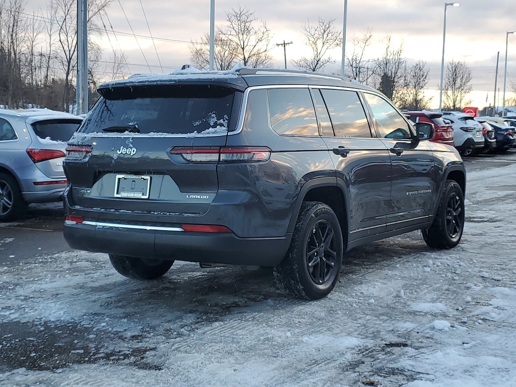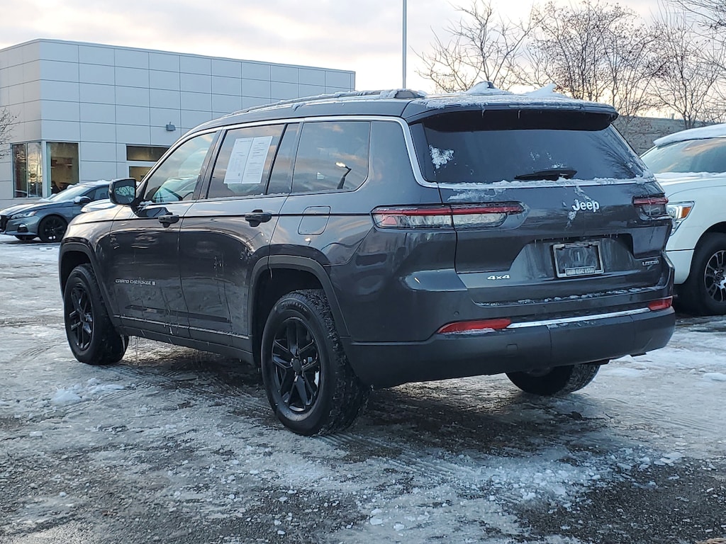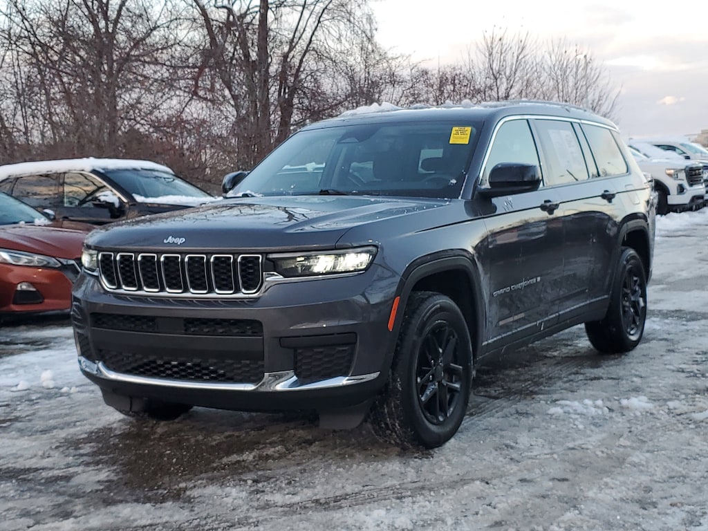 2023 Jeep Grand Cherokee L Laredo Baltic Gray Metallic Clearcoat 115V Auxiliary Power Outlet, 2nd Row 60/40 Bench w/Manual Tip/Slide, 2nd Row Seat Center Armrest/Cupholders, 3 Rear Seat Head Restraints, 3.45 Rear Axle Ratio, 3rd Row Charge-Only USB Ports, 3rd row seats: split-bench, 4-Wheel Disc Brakes, 6 Speakers, 7-Passenger Seating, ABS brakes, Air Conditioning, Alloy wheels, Anti-whiplash front head restraints, Automatic temperature control, Brake assist, Bumpers: body-color, Center Rear 3-Point Seat Belt, Cloth Seats, Compass, Delay-off headlights, Driver door bin, Driver vanity mirror, Dual front impact airbags, Dual front side impact airbags, Electronic Stability Control, Emergency communication system, Four wheel independent suspension, Front anti-roll bar, Front Bucket Seats, Front Center Armrest w/Storage, Front dual zone A/C, Front License Plate Bracket, Front reading lights, Fully automatic headlights, Heated door mirrors, Heated Front Seats, Heated Steering Wheel, Illuminated entry, Knee airbag, Low tire pressure warning, Luxury Tech Group I, Manual Fold Seatbacks, Molded In Color Black/Gloss Black Roof Rails, Normal Duty Suspension, Occupant sensing airbag, Outside temperature display, Overhead airbag, Overhead console, Panic alarm, ParkView Rear Back-Up Camera, Passenger door bin, Passenger vanity mirror, Power door mirrors, Power driver seat, Power Liftgate, Power steering, Power windows, Quick Order Package 23A Laredo, Radio data system, Radio: Uconnect 5 w/8.4" Display, Rain Sensitive Windshield Wipers, Rear air conditioning, Rear anti-roll bar, Rear reading lights, Rear window defroster, Rear window wiper, Reclining 3rd row seat, Remote keyless entry, Remote Start System, Security system, Selectable Tire Fill Alert, Speed control, Speed-Sensitive Wipers, Split folding rear seat, Spoiler, Steering wheel mounted audio controls, Tachometer, Telescoping steering wheel, Tilt steering wheel, Traction control, Trip computer, Variably intermittent wipers, Voltmeter, Wheels: 18" x 8.0" Fully Painted Aluminum, Wireless Charging Pad. 4WD 3.6L V6 24V VVT 18/25 City/Highway MPG 8-Speed Automatic