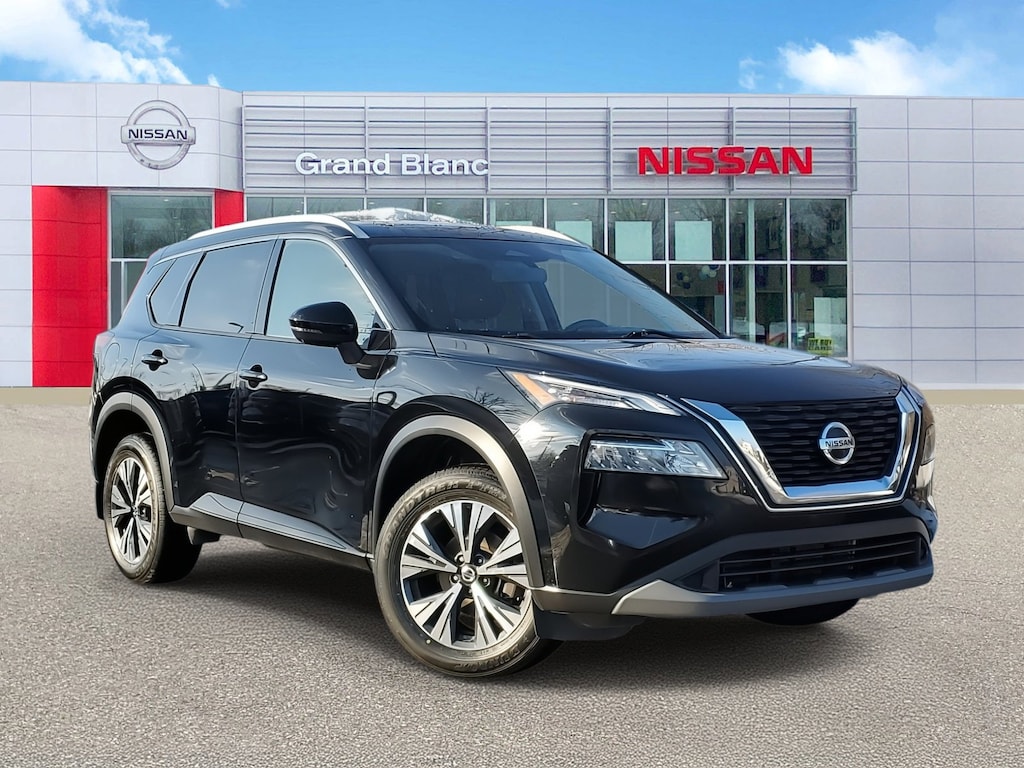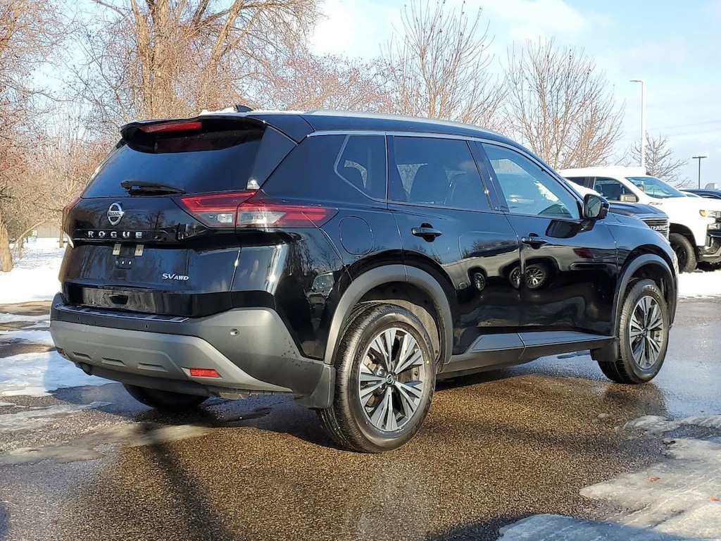 2021 Nissan Rogue SV Premium Package Super Black AWD, 18" Aluminum Alloy Wheels, 4-Wheel Disc Brakes, 5.604 Axle Ratio, 6 Speakers, ABS brakes, Air Conditioning, Alloy wheels, AM/FM Radio, AM/FM radio, Auto High-beam Headlights, Automatic temperature control, Black Splash Guards (Set of 4), Brake assist, Bumpers: body-color, Chrome Rear Bumper Protector, Cloth Seat Trim, Delay-off headlights, Driver door bin, Driver vanity mirror, Dual front impact airbags, Dual front side impact airbags, Electronic Stability Control, Emergency communication system: NissanConnect Services, First Aid Kit, Floor Mats w/1-Piece Cargo Area Protector, Four wheel independent suspension, Front anti-roll bar, Front Bucket Seats, Front Center Armrest, Front dual zone A/C, Front reading lights, Fully automatic headlights, Heated door mirrors, Heated Driver & Front Passenger Seats, Heated Leather-Wrapped Steering Wheel, Illuminated entry, Knee airbag, Leatherette Seat Trim, Low tire pressure warning, NissanConnect featuring Apple CarPlay and Android Auto, Occupant sensing airbag, Outside temperature display, Overhead airbag, Overhead console, Panic alarm, Passenger door bin, Passenger vanity mirror, Power door mirrors, Power driver seat, Power Liftgate, Power Panoramic Moonroof, Power steering, Power windows, Premium Package, Radio data system, Rear anti-roll bar, Rear Parking Sensors, Rear seat center armrest, Rear side impact airbag, Rear window defroster, Rear window wiper, Remote keyless entry, Roof Rails, Second Row Sunshades, Security system, Speed control, Speed-Sensitive Wipers, Split folding rear seat, Spoiler, Steering wheel mounted audio controls, Tachometer, Telescoping steering wheel, Tilt steering wheel, Traction control, Trip computer, Turn signal indicator mirrors, Variably intermittent wipers, AWD. Premium Package AWD 2.5L I4 DOHC 16V 25/32 City/Highway MPG CVT with Xtronic